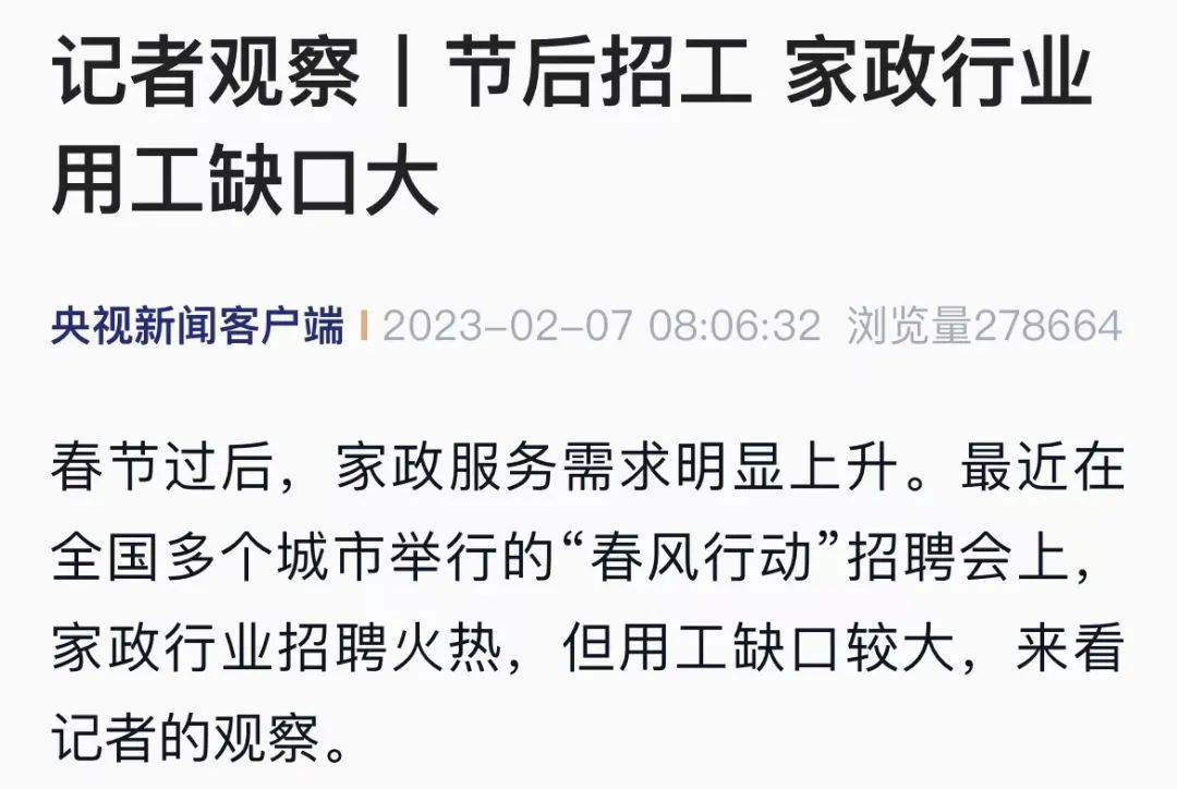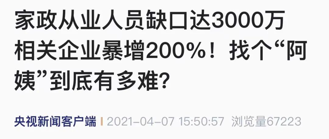 近年来,关于90后、毕业生从事家政行业的新闻总能引发舆论关注。记者梳理发现,关注家政从业人员缺口的报道更是不断增多。