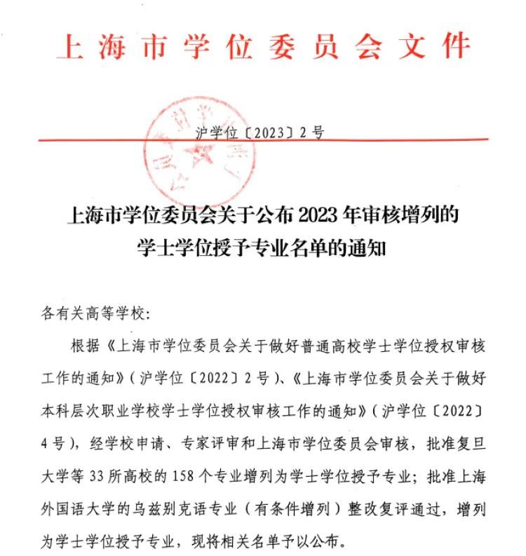 上海市学位委员会公布了