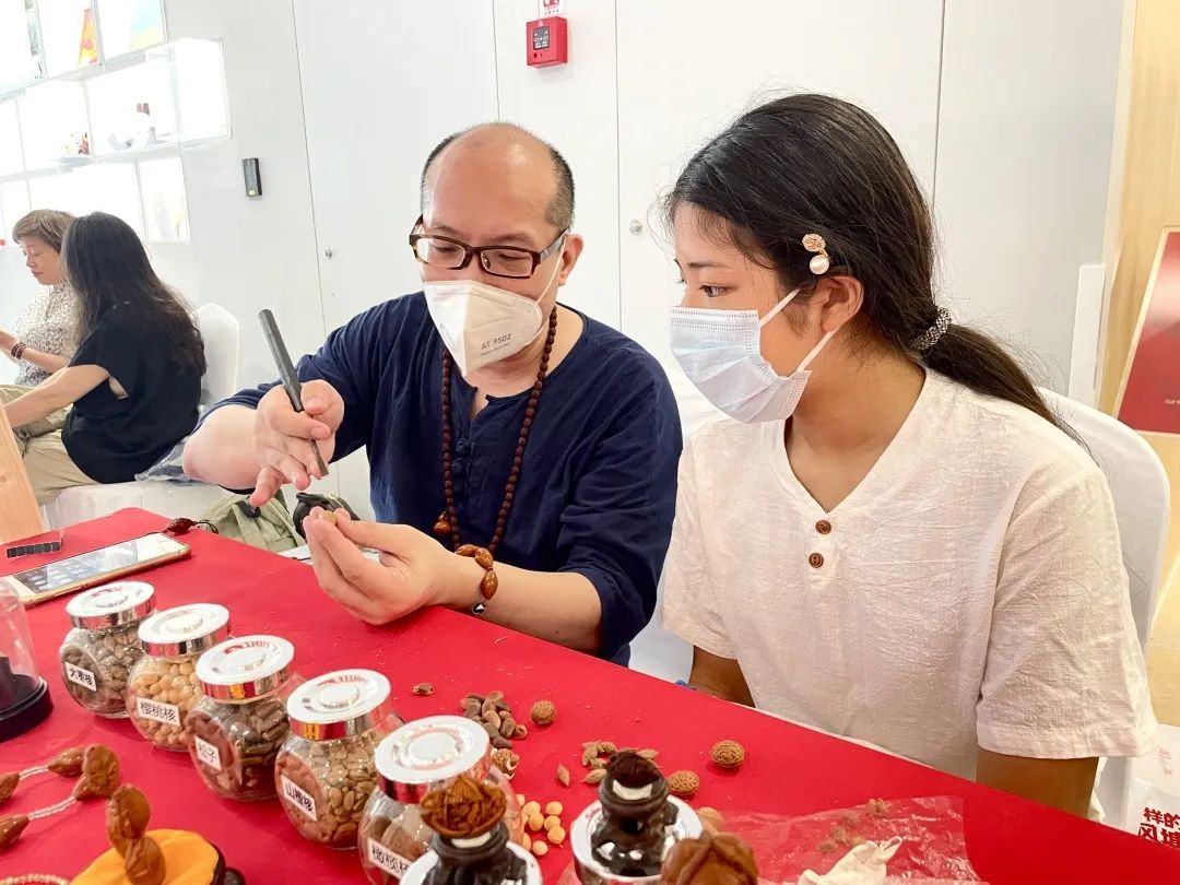 剪纸传承人现场展示的剪纸绝活,勾起了不少孩子的好奇心,大家纷纷围观,并亲手体验了起来;在核雕传承人的手里,一颗小小的橄榄核可以变身独一无二的艺术品;看似繁复缠绕的中国结,在非遗传承人的手中很快就呈现出来;传统和香制作技艺传承人还邀请居民现场亲手体验制作打香篆过程,让人们更好地了解非遗文化……伴随着丝竹声声,核雕、扎染、面塑、剪纸、钩针编织、中医药调香等10多位非遗传承人以非遗作品展示和传承人现场展演等方式,为社区居民呈现一场精彩纷呈的视觉盛宴。