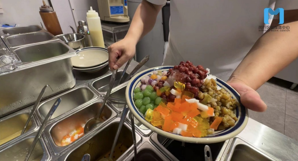 旁边的刨冰店,很多人第一次来就被种草了,店主介绍,在当地有一种说法“晚上可以不吃饭,但不能不吃刨冰”。