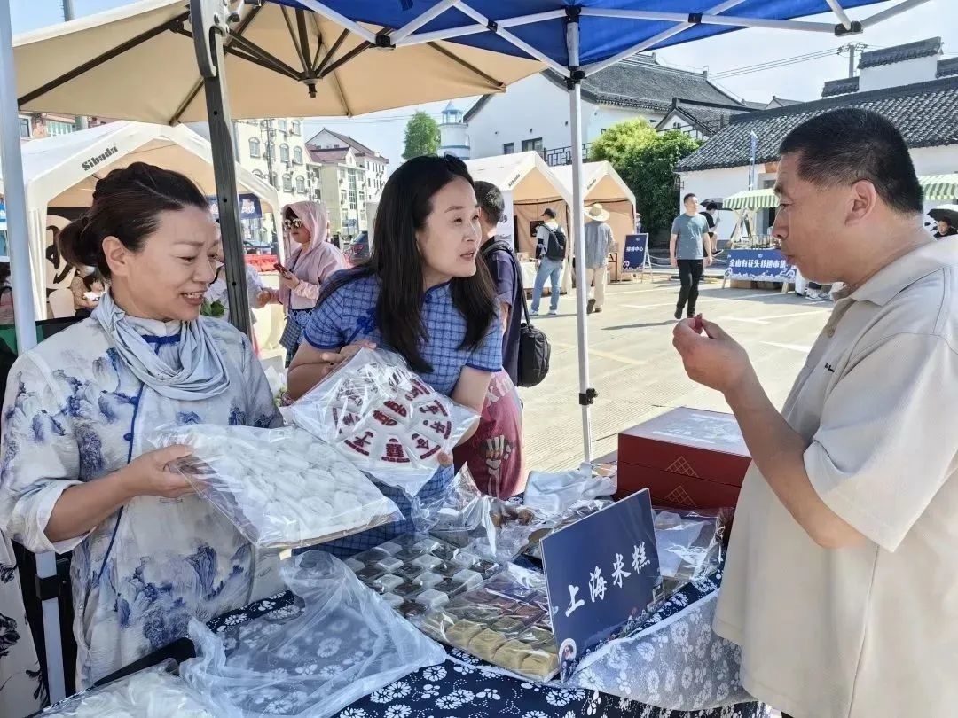 同时,金山有“花头”非遗市集也于今天正式开市。此次市集汇集了种桑养蚕、状元糕、枫泾粽子、枫泾丁蹄、上海黄酒、望秦啤酒、江南文人行茶、古琴艺术、糖画等60余个项目,集金山非遗、民间民俗、民间美食、手工技艺、文创产品等内容为一体,通过非遗购物节、非遗美食节的形式促进非遗传承,助推非遗市场化。