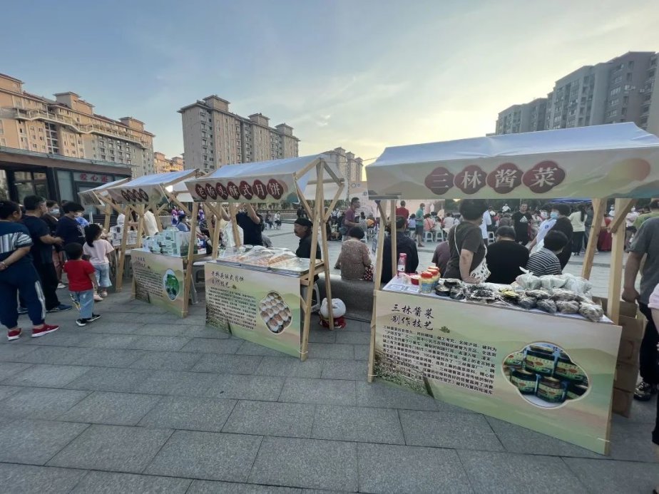 下午,非遗集市率先开展。老桥头酥式月饼、下沙烧卖、龙潭酒酿、盐仓水晶年糕、三林酱菜、牛肚咸菜等众多非遗美食以及浦东喜庆剪纸等非遗技艺集中展示,受到了社区居民的欢迎。