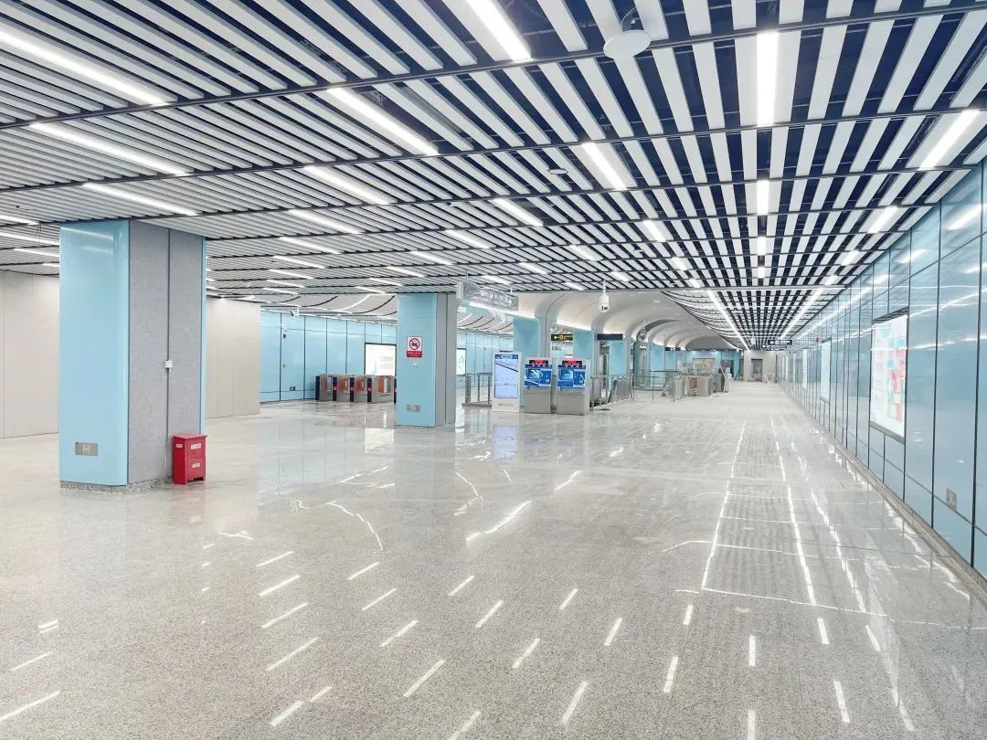 祖冲之公园站车站站台、站厅宽敞、明亮,闸机、售票机已准备就绪。