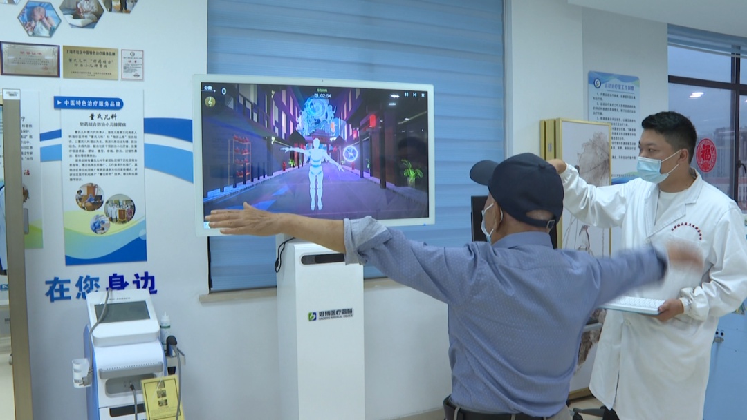 60岁的王先生患有关节炎,天热吹空调时,常觉得胳膊抬不起来。在康复中心里,上肢康复机器人通过一个个小游戏,帮助王先生进行康复训练,锻炼关节肌肉。