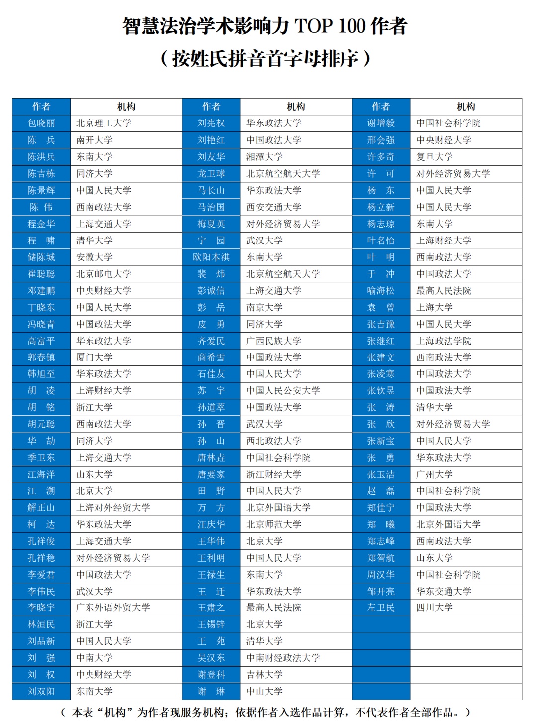 智慧法治学术影响力TOP100作者