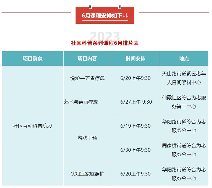 从本月起,万宏养老集团将在原有课程础上,继续推出以元认知记忆训练、认知症家庭照护、游戏干预及舞蹈为主题的系列公益课程,持续完善老年认知障碍设施布局、健全社区和家庭支持、优化多元照护服务、营造关爱包容的友好氛围,为社区老人保驾护航。