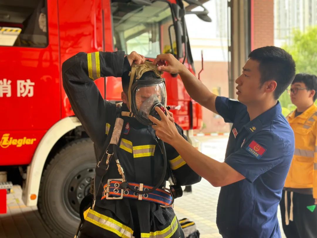 大饱眼福之余,参观人员还可以近距离接触消防器材。穿战斗靴、着战斗服、扎腰带、戴头盔、背空气呼吸器……在消防员的指导下,参观人员李舒国如愿以偿过了一把“消防员”瘾,“以前只是觉得穿上这套衣服很帅,没想到竟然这么重,消防员的日常比我们想象中更不容易。”