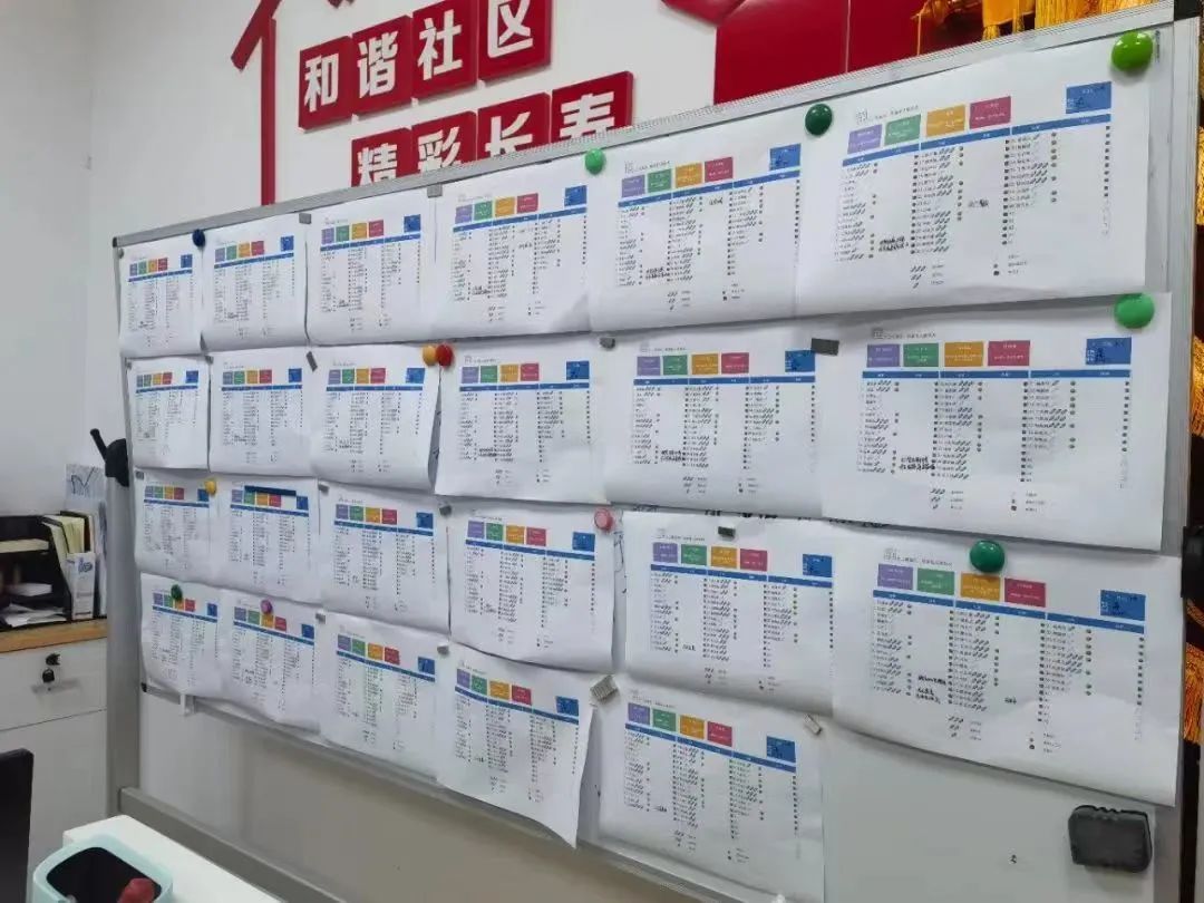 走进大上海城市花园小区的居委会,一面贴满了分色管理表格的白板格外引人注目,上面清晰明了地记录了居民区内40位独居、孤寡老人的身体、心理情况及注意事项。