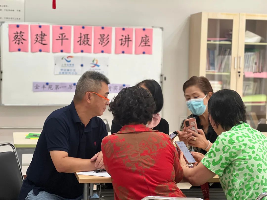 金丰苑摄影班学员戴阿姨说:“只要问他,他就会很认真仔细地教,我们原来都是零基础的人,现在也算入门了。”