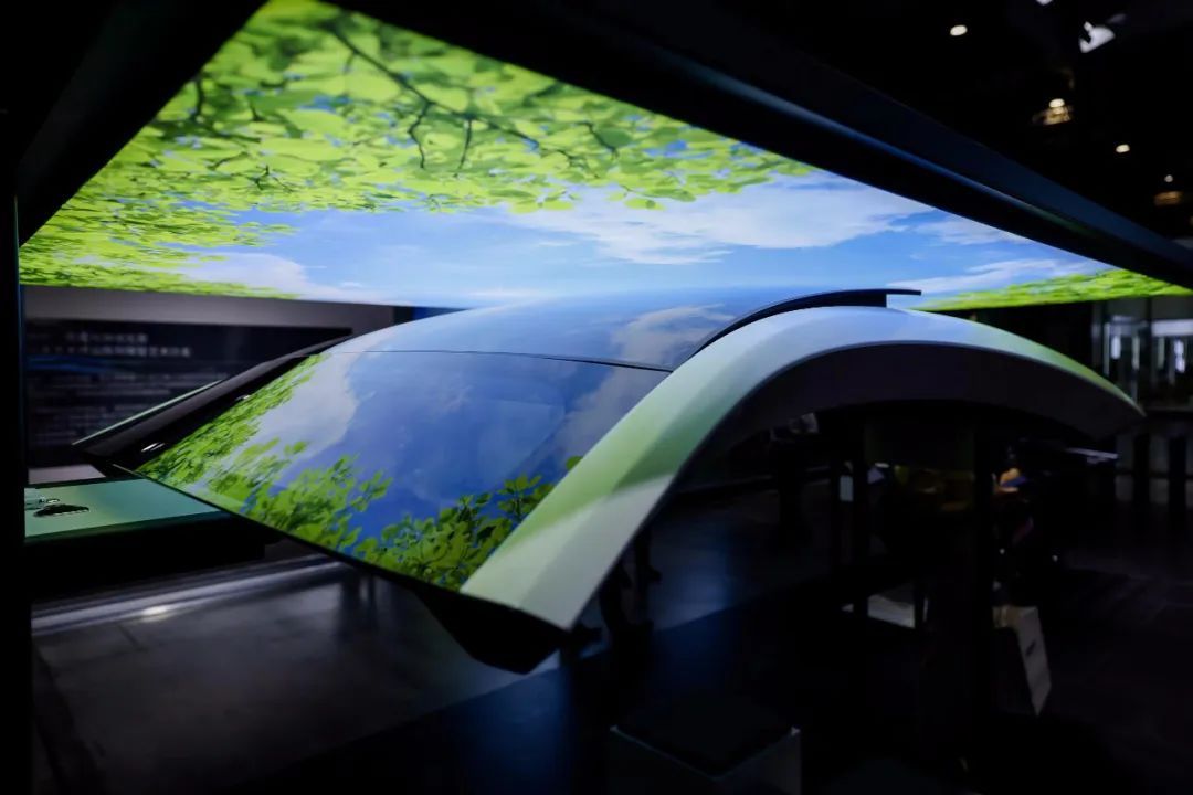 现场展示的调光起翘天幕车顶,不仅集成了可调光功能,而且具有起翘通风功能,集视野开阔、空气清新和隐私功能于一体,可以为车内创造舒适的氛围。