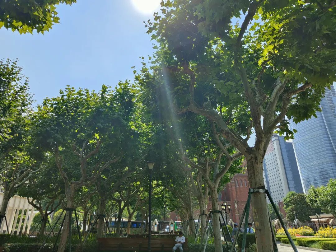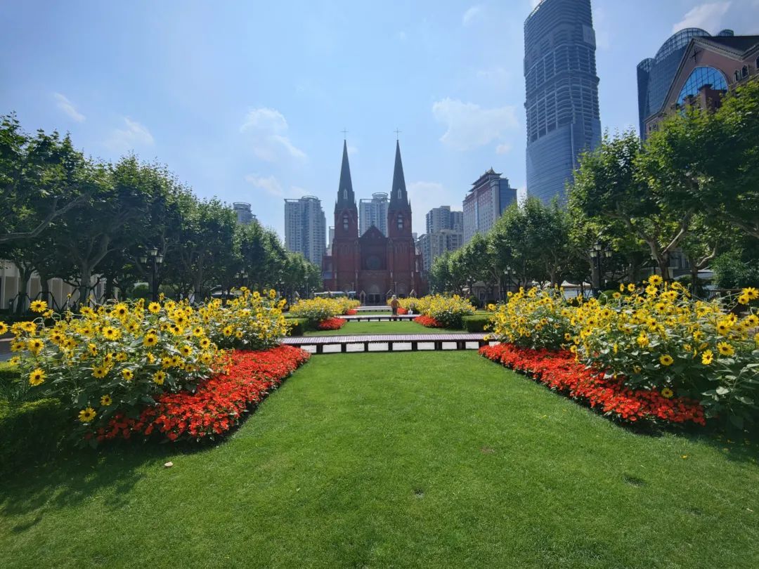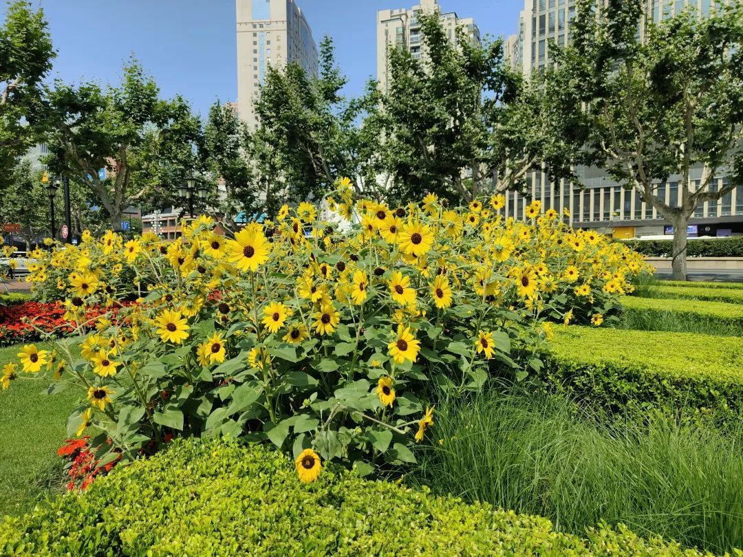 在这里,市民们不仅可以赏花,还可以去不远处的徐家汇书院阅读。书香与花香、鸟语与人声,不论是在浓密树荫下的长椅上小憩,坐赏徐家汇川流不息的车水马龙,还是在盛开的向日葵花海中徜徉漫步,感受历史文化在城市的岁月沉淀,都是一种享受。