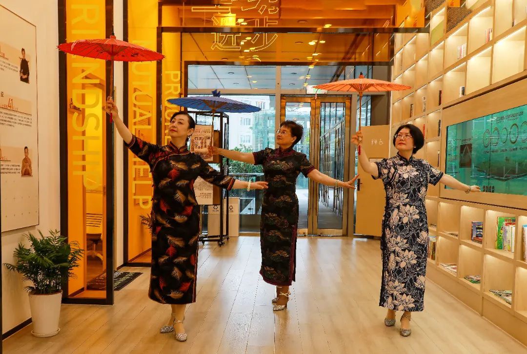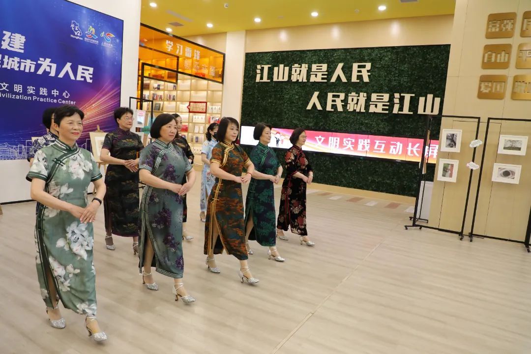 张建夏担任旗袍队队长,平时负责组织成员们集合排练,她自己也从零基础到现在可以自信地上台演出:“旗袍特别有东方韵味,我觉得穿上旗袍整个人气质就不一样了,变得温文尔雅。我们队这几年来参加了不少区里和街道的演出活动,对于我们来说,最大的收获就是让退休生活更充实了!”