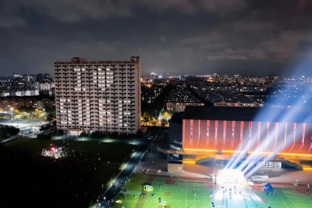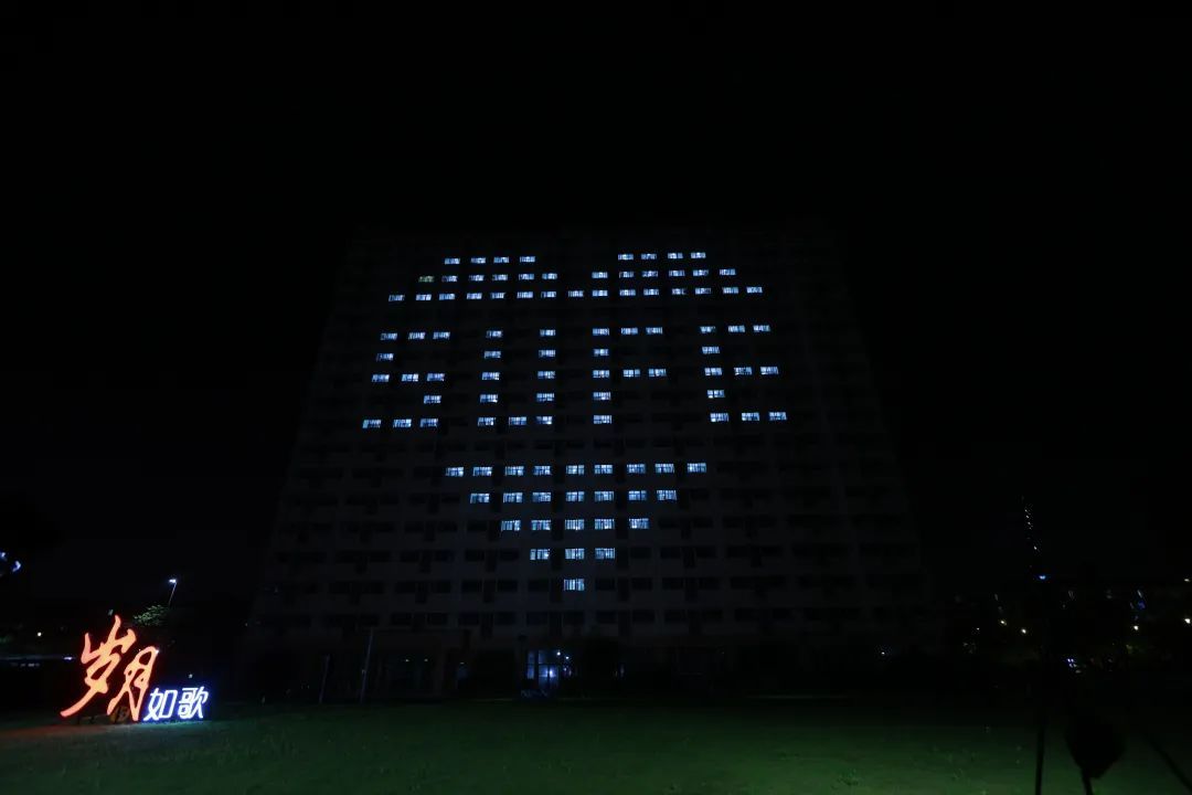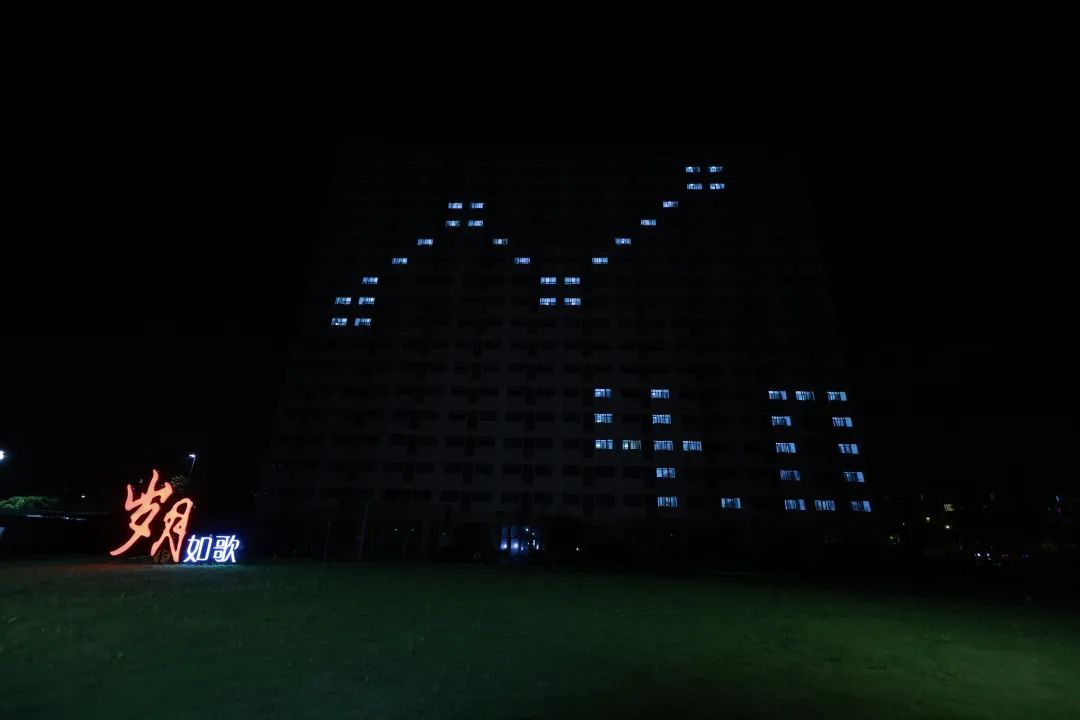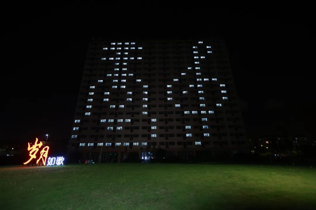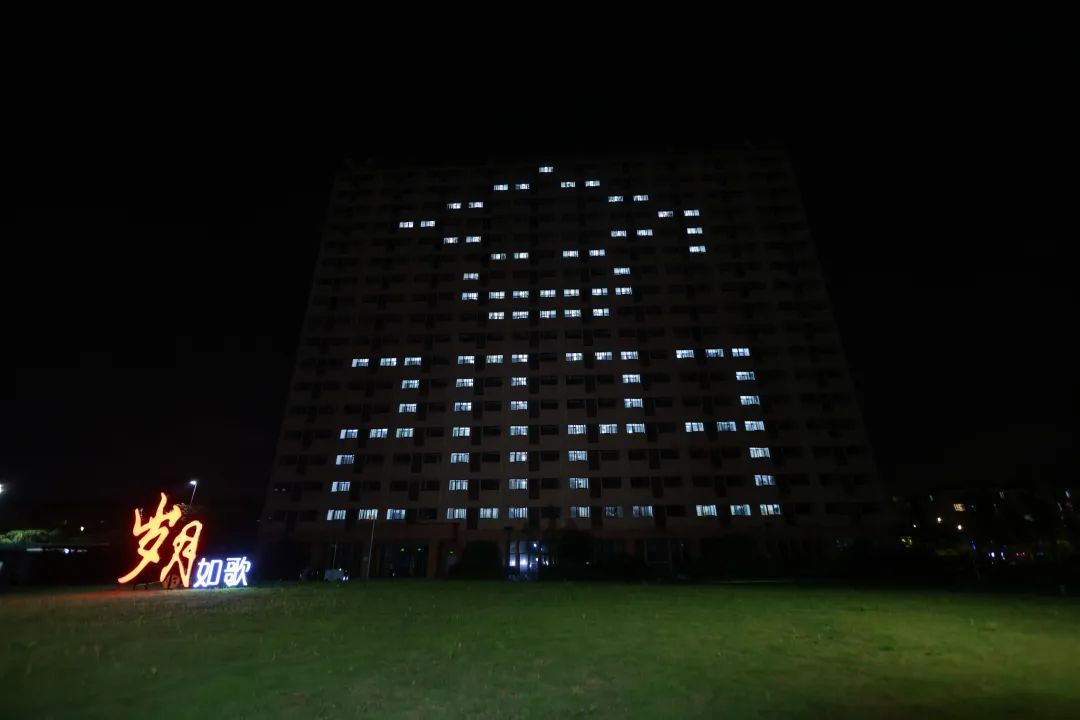 随着草坪音乐节最后一首《不说再见》的歌声余韵,校内亮灯仪式悄然开始。一张带有“SUFE”的爱心图案首先点亮了上财的夜空,拉开了亮灯仪式告白母校、奔赴未来的序幕。