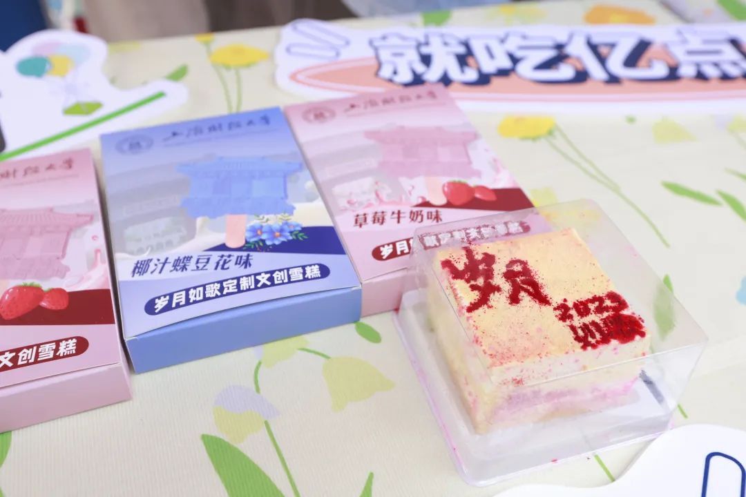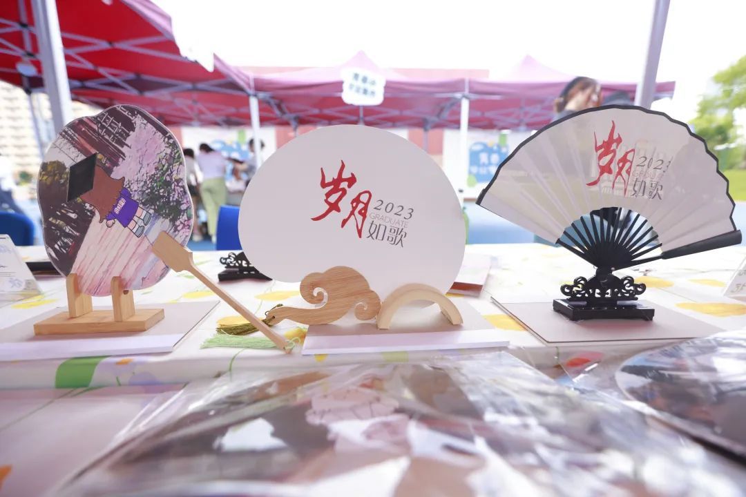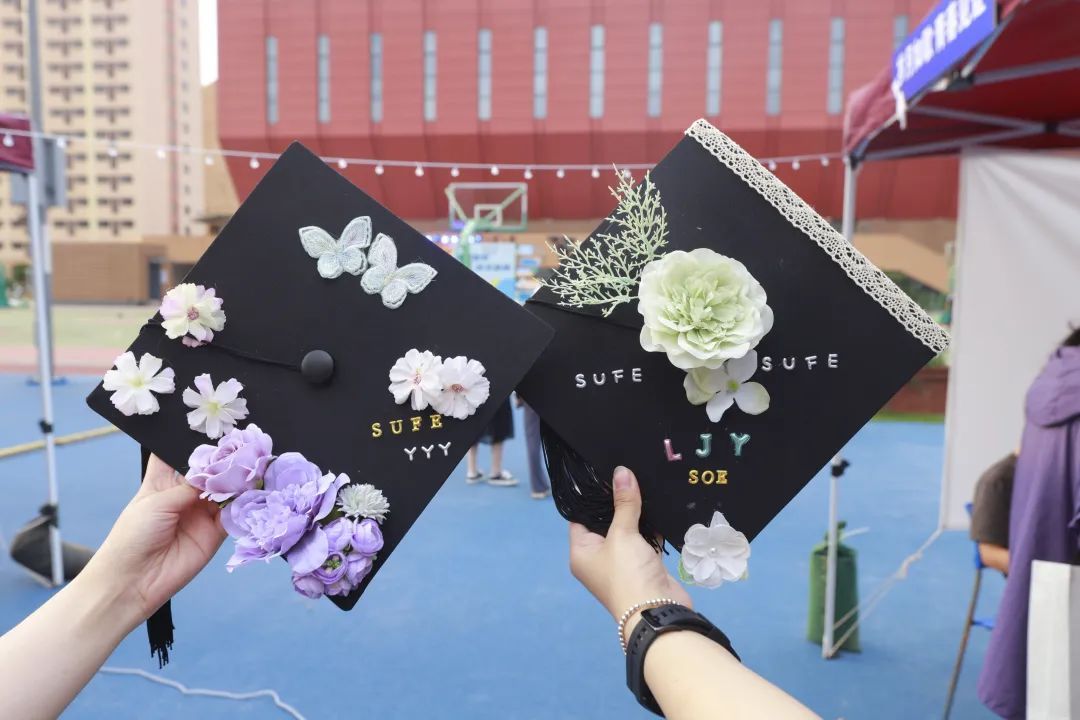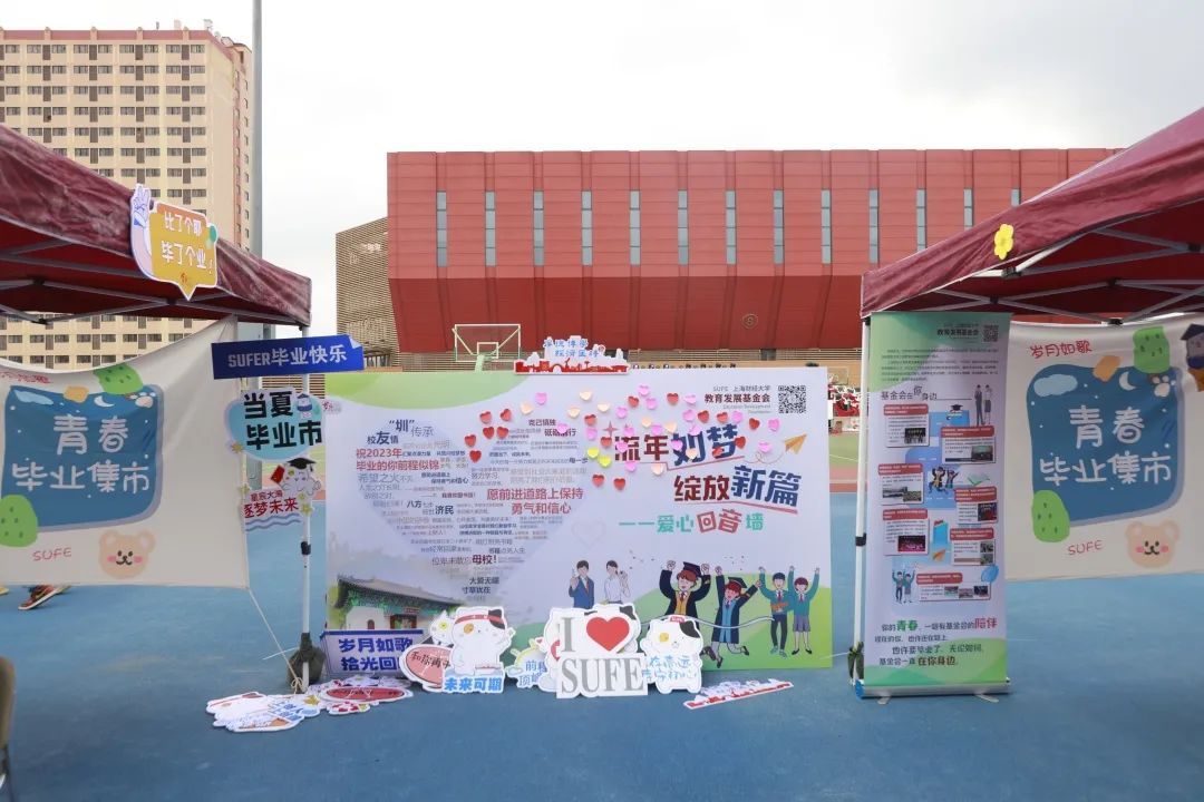 毕业集市共分为四个主题展区,分别是志愿公益展示区、毕业专属小食区、上财定制文创区、创意游园互动区。集市摊位的布置也独具匠心,41个摊位共同拼出“SUFE”,在辗转回首间,留下SUFE学子足迹。
