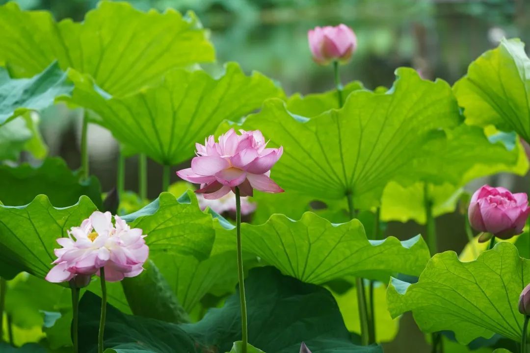 此外,位于嘉定新城的远香湖畔,成片的荷叶沿着亲水栈道错落有致地铺散开,虽然还不是盛花期,但也已有部分荷花盛开。微风轻抚荷池,泛起阵阵涟漪,荷叶、花朵轻轻摇曳,摆动着美丽的身姿,预示着盛夏将至。