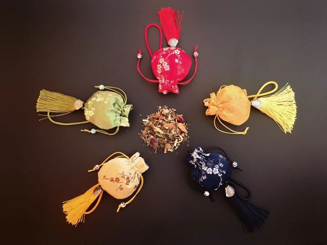 此外,使用香囊时,要注意保持干燥。香囊的香气一般可维持1个月左右,香味变淡时需及时更换。如遇特殊情况,比如接触皮肤时出现红疹、瘙痒等现象,或佩戴过程中出现心慌、胸闷等异常应立即停用。