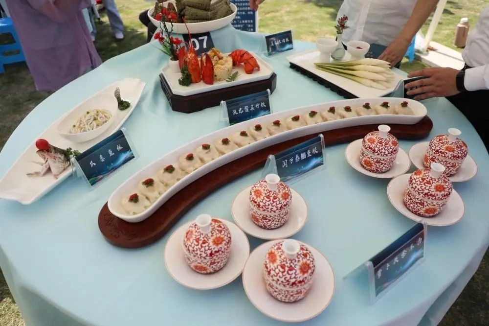 各参赛单位面前的圆台上,还摆放着仔姜麻辣草鸭、南乳粽香肉、酱瓜酥皮蟹斗、黑金腐乳凤翅、象形萝卜酥等各色创意菜品,它们虽不参与评比,但皆符合“创新”,独具“酱”心。