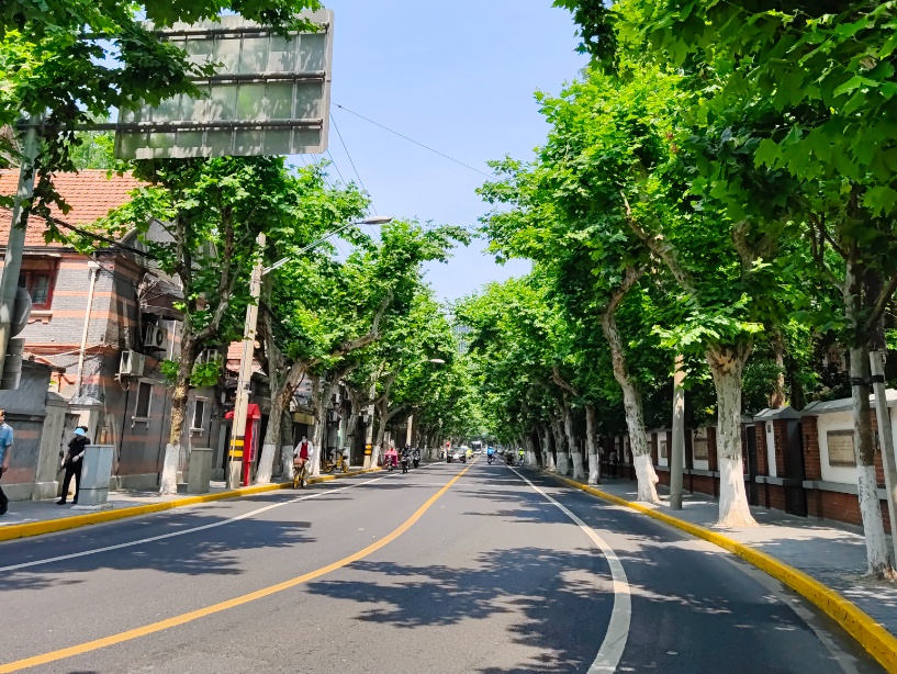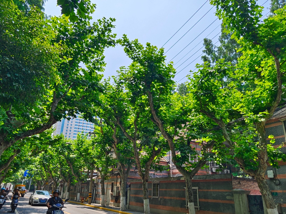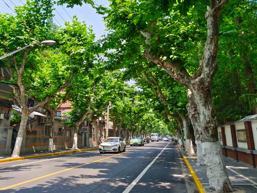高大茂密的悬铃木形成了溧阳路上独特的小气候,不仅遮挡了阳光、反射了太阳辐射,还提高了空间环境的相对湿度,让行走于溧阳路时仿佛穿梭于隧道之中,使身心都得到放松。