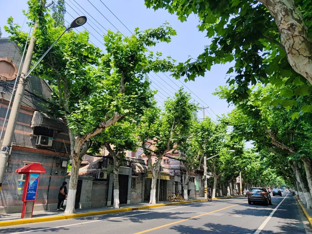 行走在溧阳路上,高大的树木与老洋房相映生辉,让小小的马路增添了不少文化气息。