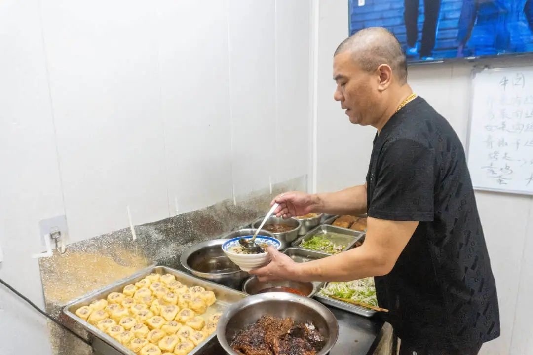 “来一碗冷面,再来一两生煎!”“知道了,浇头自己浇啊!”来店里吃面的都是老熟客,店里人多时,都会自己动手。据介绍,店里每天早上4点开门,中午12点左右关门,所有的东西都是现烧现做的,卖完就没有了。