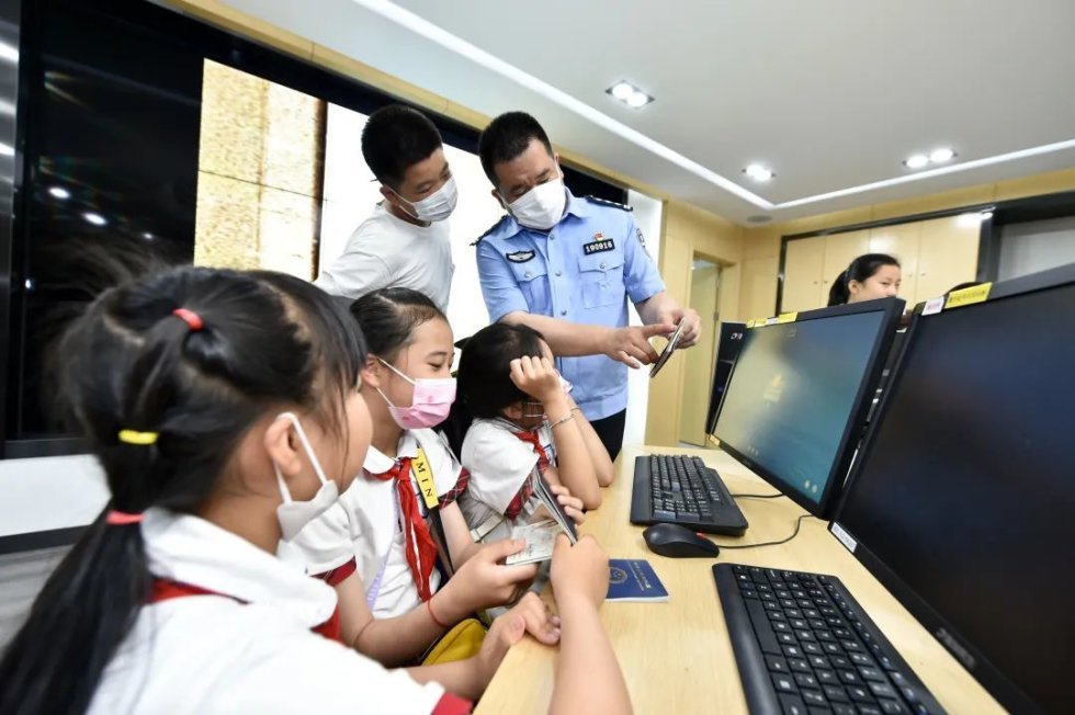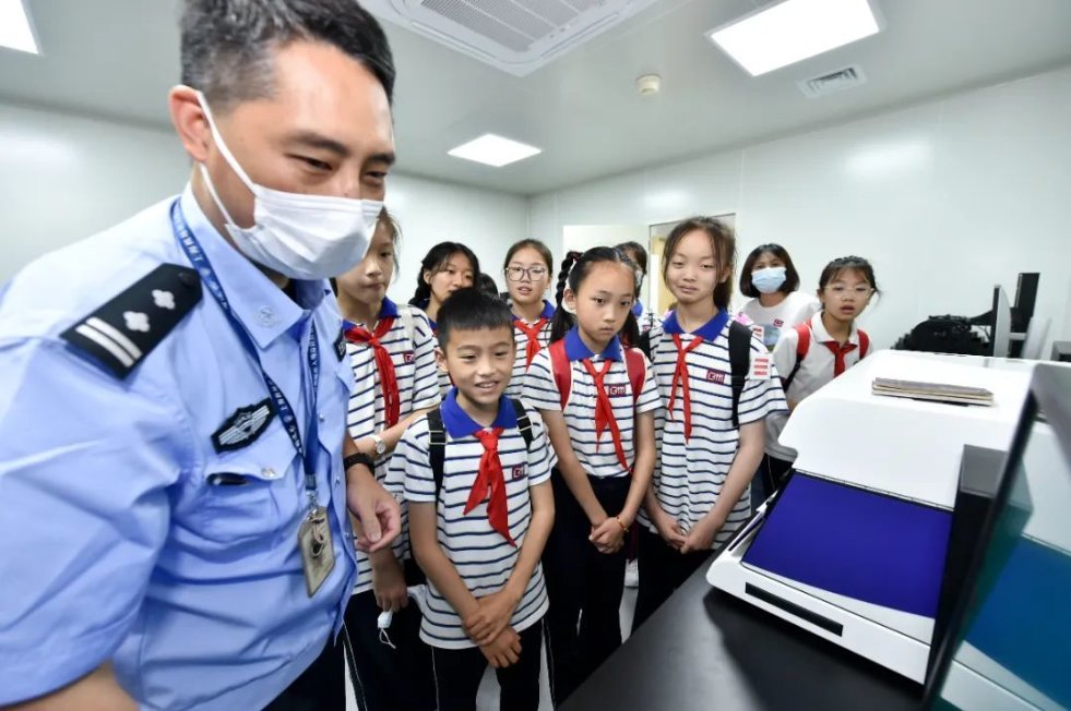 红领巾讲解员们有模有样地拿起护照,运用侧光、透光鉴别出入境证件真伪,并借助精密的文检仪器,让伪假证件“现出原形”。“哇!这个仪器都能看清纸张上的纤维,还能分辨出不同的笔迹……”同学们直呼大饱眼福,纷纷为高科技警务点赞。