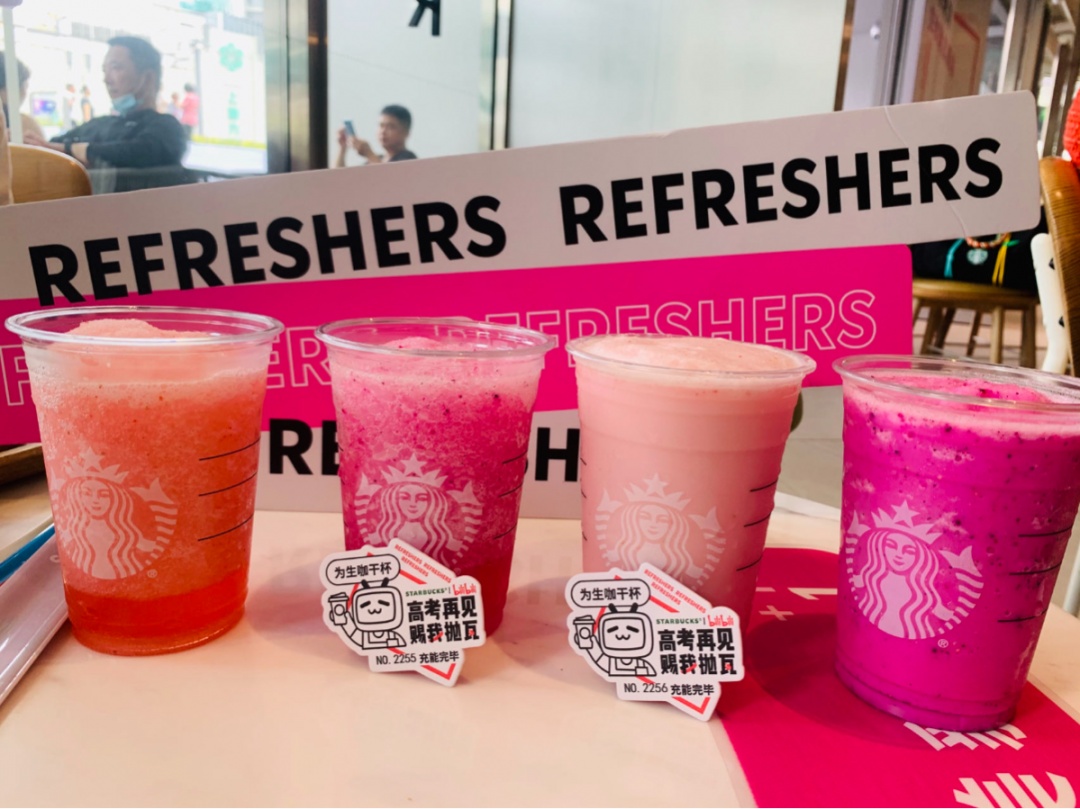 日前,星巴克中国联手哔哩哔哩发起“高考再见,赐我抛瓦(power)”活动,在徐汇美罗城打造全国唯一一家限时联名快闪店——生咖抛瓦基站。这里一改过去墨绿配色,换上了今夏大火的火龙果色,并点缀着bilibili元素,处处都充满了潮流气息。不过这个充满多巴胺色彩的门店仅开放至6月14日,想要打卡的年轻人们需要尽快前往,现在还有机会和星巴克的熊店长以及小电视进行线下互动!