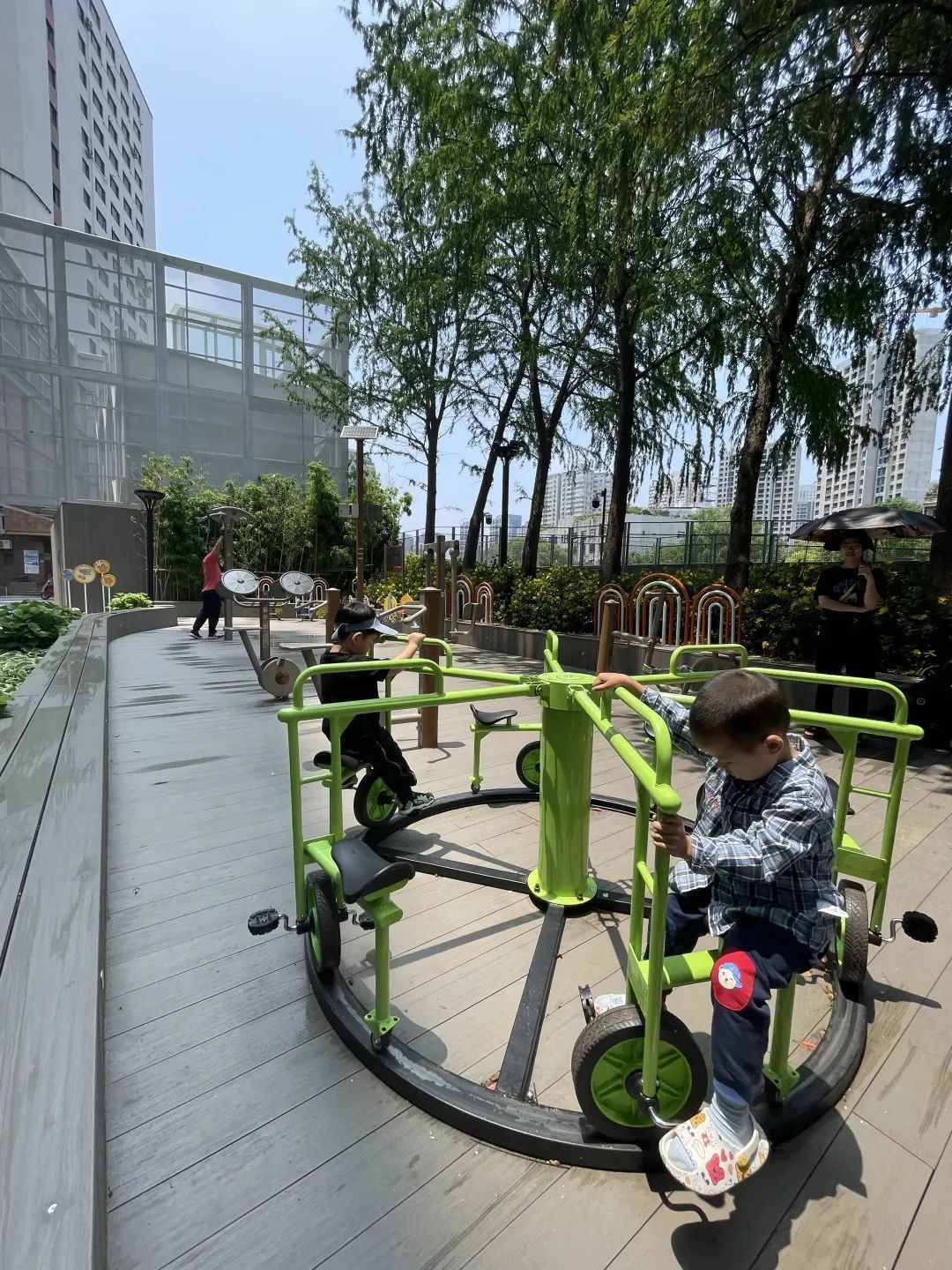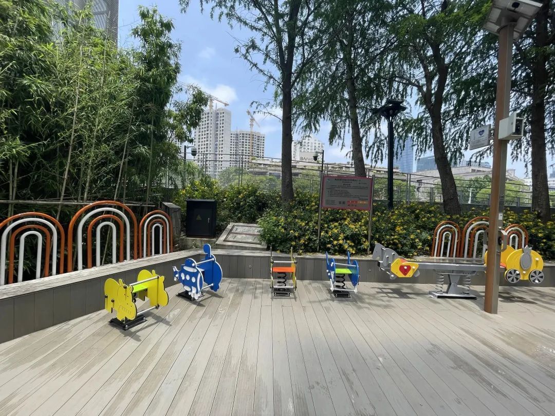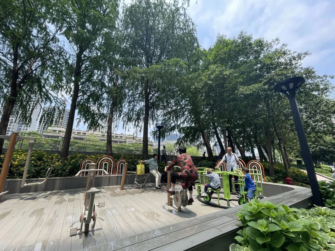 初夏微风徐徐,河畔杨柳依依,绿荫下的儿童乐园里,跷跷板、摇摇椅、转盘车……孩子们快乐地运动、嬉戏,家长们有的趁机在一旁静坐休息,有的被孩子们的活力所感染,利用成人健身设施锻炼身体。自日前苏州河畔全新建成一个儿童乐园后,对于沿线居民,尤其南京东路街道福海居民区中泰公寓的居民们来说,这样美好的场景成为了日常。