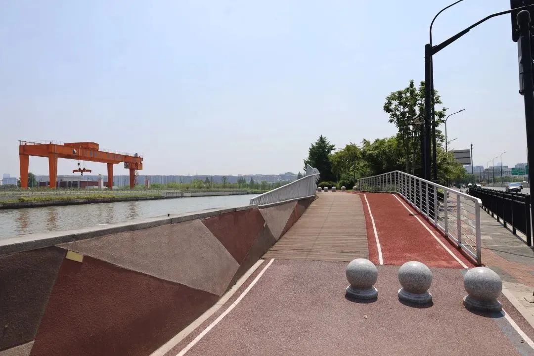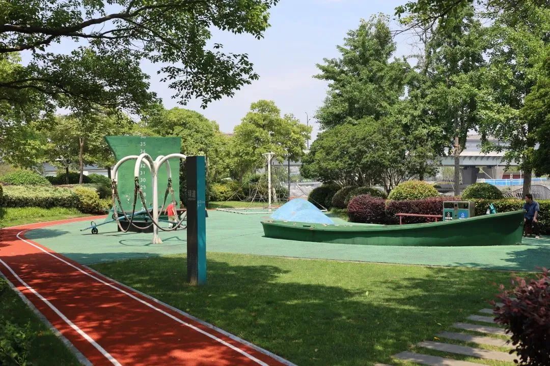 风铃绿地市民健身步道位于北翟路456号,漫步于步道可以看到“航道”是风铃绿地主要的设计灵感来源,这是因为苏州河曾经是货船往来不绝的航道。