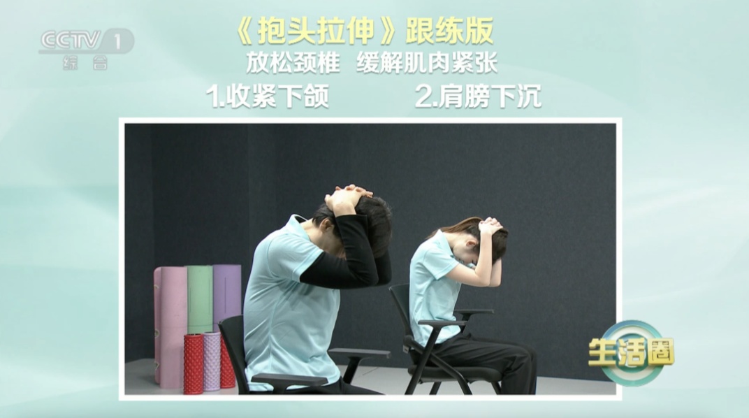 1. 做“抱头拉伸”动作时,要保持最大拉伸幅度和感受,保持15秒~30秒,或者是3个~5个呼吸;