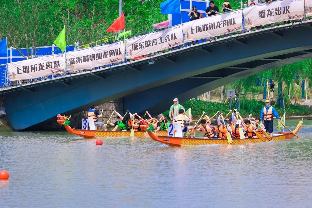 端午临近,第四届陆家嘴金融城龙舟赛在浦东张家浜河道如期举办。来自陆家嘴金融城27支龙舟队、300余名运动员携手角逐这次比赛。河道上龙舟争渡,百桨起舞,呐喊助威声振奋人心。