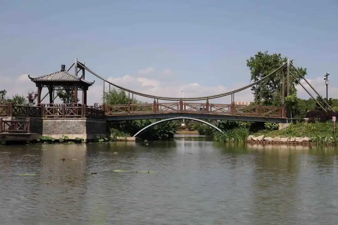 一旁10米宽、1公里长的园沟河,河水静流、水色清澈,岸边水生植物连岸。走过“同心桥”“园沟桥”,是园沟河旁的认养基地。这儿的土地划分成“小方块”,向全市市民开放,自愿认养,合作社负责种植管理、收成和寄送。“小方块”上,清清河水浇灌的当季各色蔬菜瓜果正生机勃勃,长势喜人。这一模式不仅为村民提供了就业岗位、增加了收入,还让市区居民有了一处亲近土地、享受自然,体验农耕乐趣的好去处。