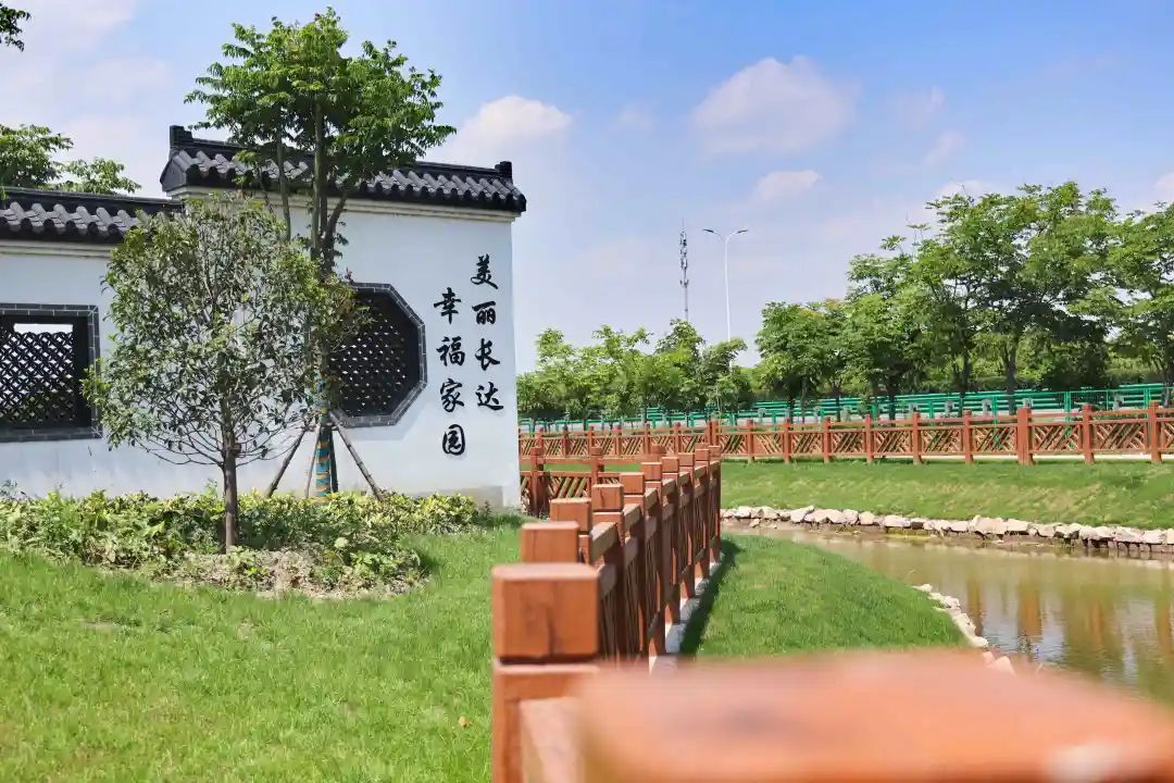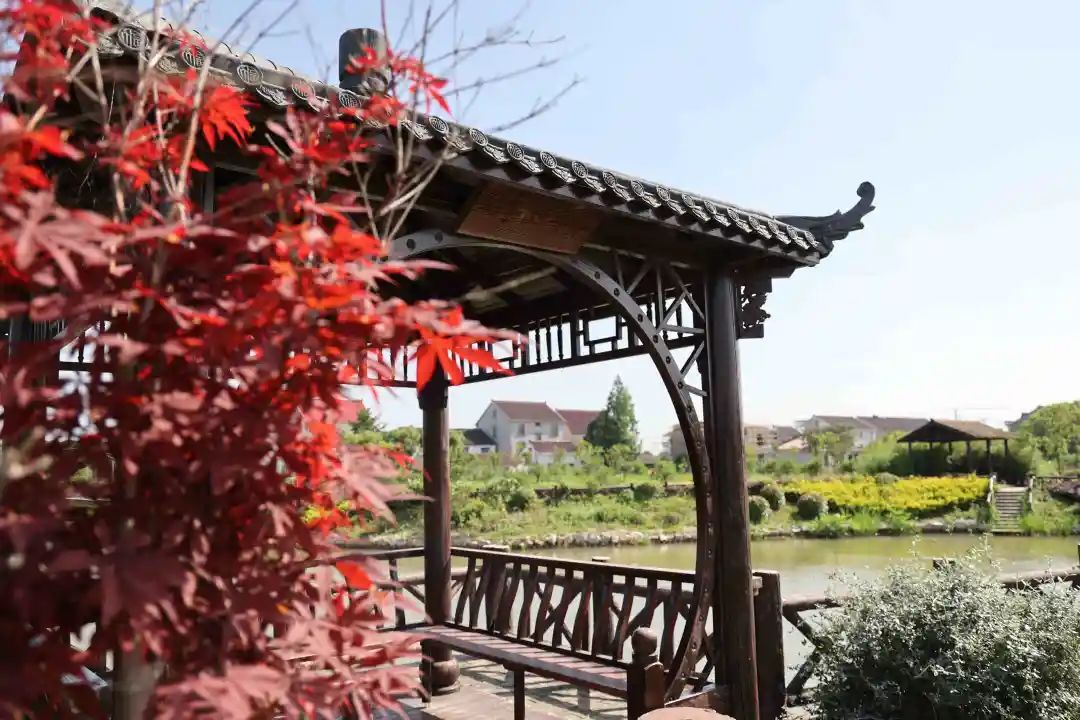一处傍着清清小河的木质长廊,不觉让人前往,此处的水韵长廊,是村民日常休憩的好去处,长廊檐下的村规民约,潜移默化淳朴着民风,一旁还有健身设施和小亭静立。小园花草葱茏,绿荫如盖,幽静宁谧,微风拂过,香气萦绕,让人享受片刻之宁静美好。
