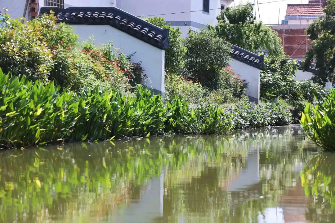沿河行,每户门前整洁干净、花草鲜美,河边绿树婀娜,倒影成趣。在村里的“新时代文明实践点”,“鹤邻家”将家门口服务延伸到村组,土布制作工作室和傅雷“家”文化学习室,让老手艺和文化精神得以传承。