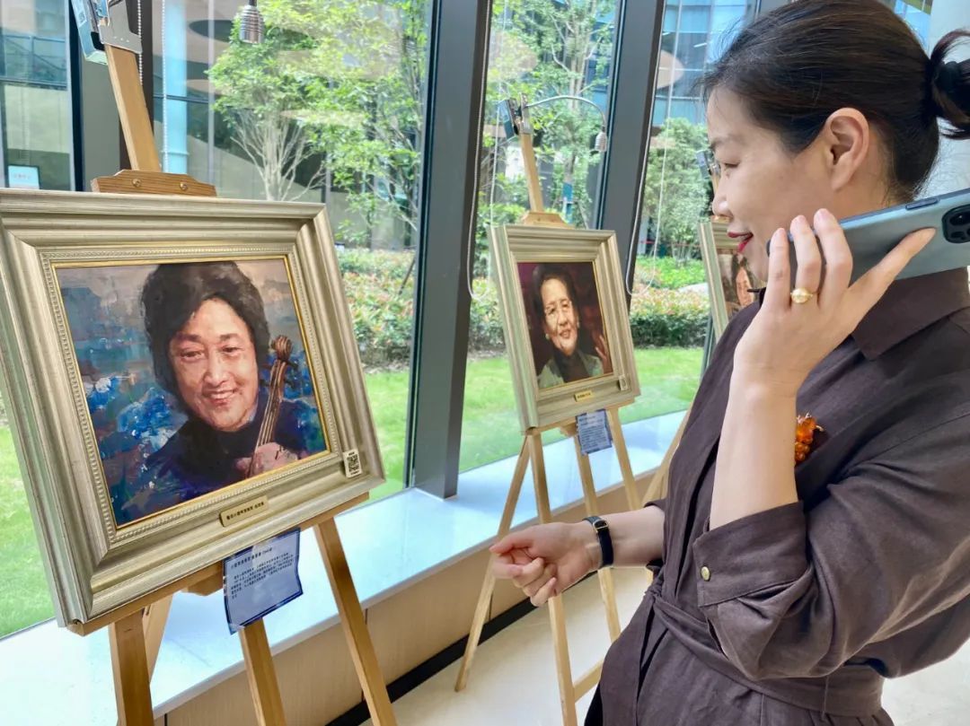 欣赏着小提琴演奏家俞丽拿的肖像画,手机扫一扫,还能听到《渔舟唱晚》的熟悉旋律,来自上海汽轮机厂的全国劳模刘霞很开心:“我平时从事的是材料热工方面的工作,今天有机会来体验这种不一样的艺术享受,感觉蛮有意思,画上人物也更加栩栩如生!”