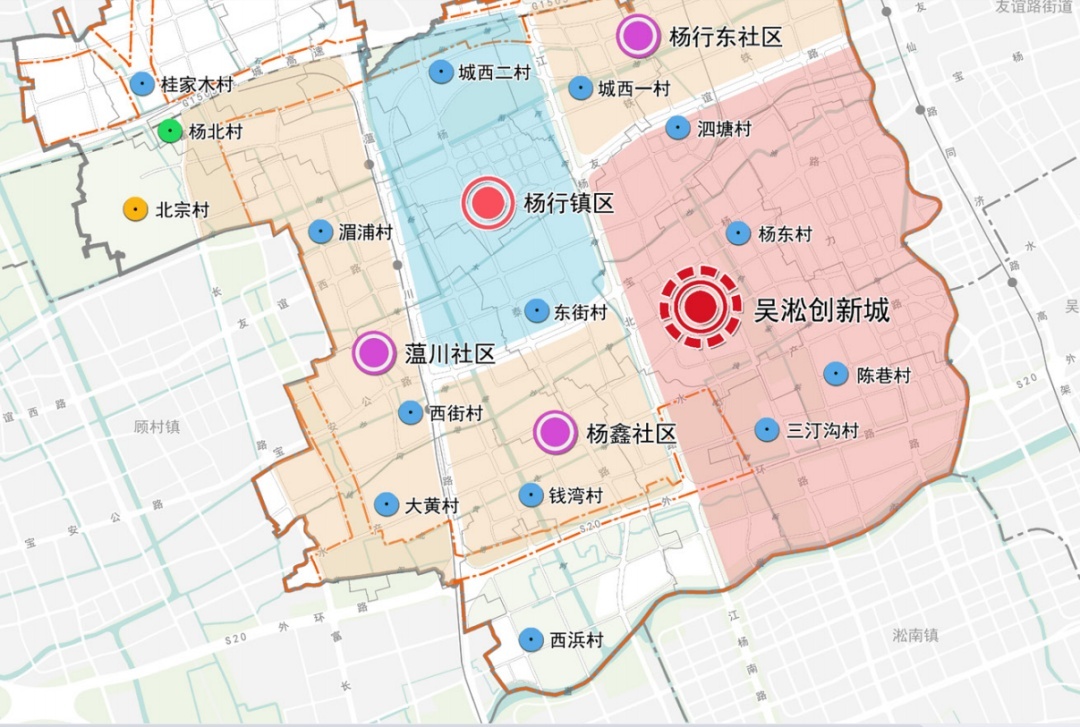 杨行镇杨鑫社区位于宝山新城中南部,社区东至江杨北路、南至外环线S20、西至蕰川路、北至宝杨路,总用地面积约390.31公顷,现状城市建设总用地为349.21公顷。