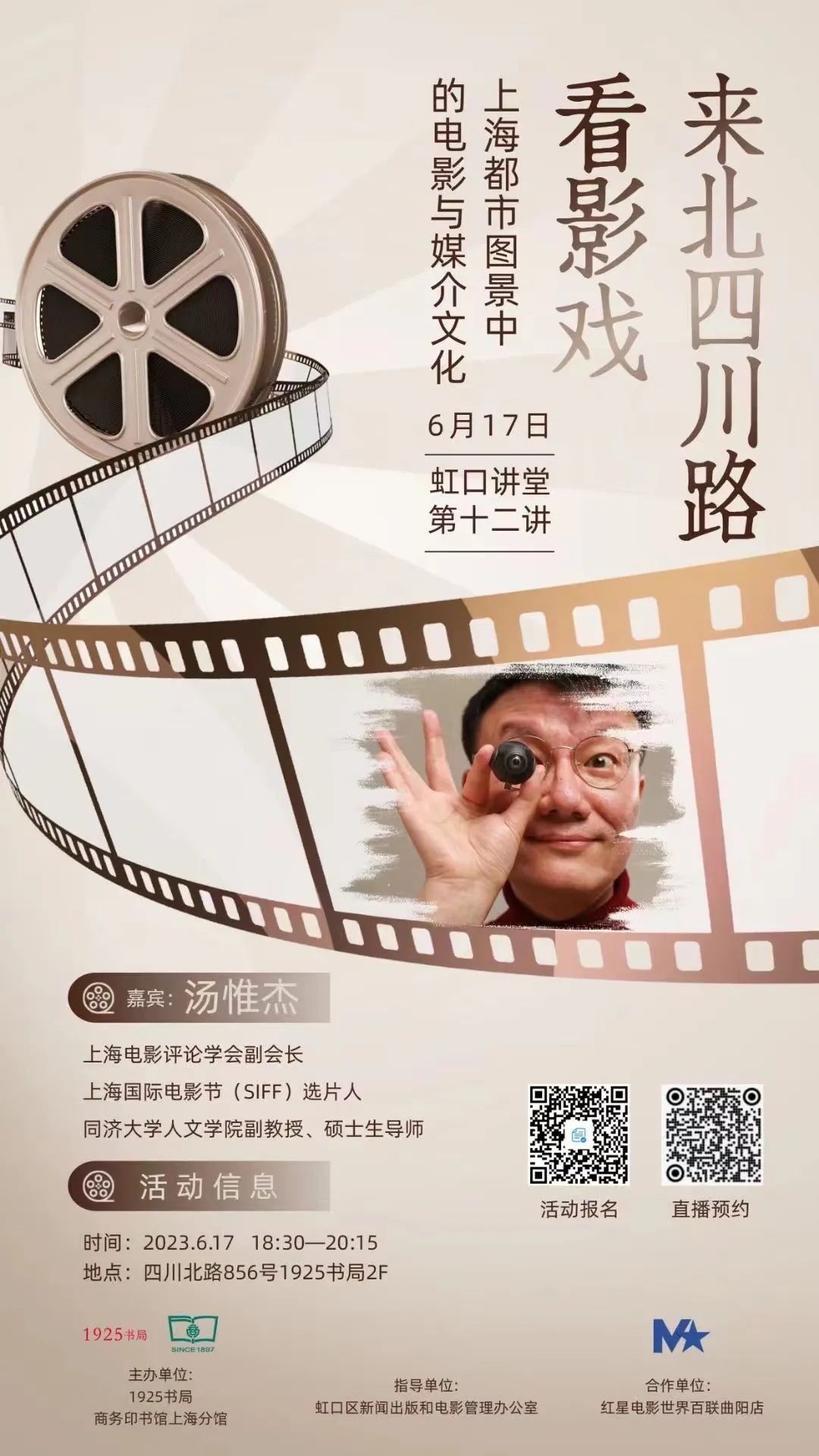 “虹口讲堂”第十二讲将于6月17日晚“开课”。届时,在四川北路856号1925书局,一场以《来北四川路看影戏——上海都市图景中的电影与媒介文化》为主题的分享会,将商务印书馆与电影的故事、虹口与电影的故事娓娓道来。