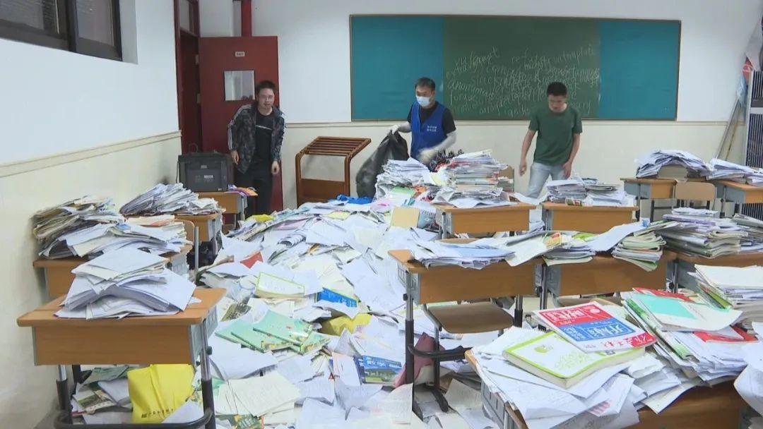 在上海格致中学奉贤校区,高考一结束,一辆红色的回收车便开进了校园。这辆回收车,将为在校的169位毕业学生,开通“毕业回收”贴心服务。现场,在老师的引导下,毕业生们把自己不再需要的学习资料、书本等统统运到指定教室或堆放点,便于统一处置。随后,工作人员们将废旧纸张装袋、称重、装车。根据初步统计,当天共一次性收集到1300多公斤的废旧纸张。上海格致中学高三学生陈思好说,为了高考,她买了很多复习资料、自测卷,这些已经使用过的资料、试卷,能够有这样一个途径得到妥善解决,“对我来说,可以轻轻松松回家了。”
