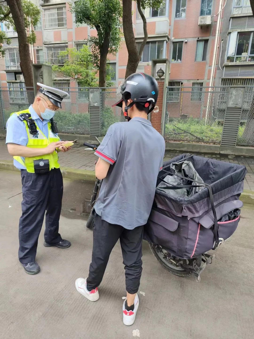 2023年6月13日7时34分,宝山交警在共和新路共康路路口,对当事人陈某实施“从事快递、外卖等网约配送活动未按规定使用悬挂专用号牌的电动自行车的”违法行为,处以罚款50元。