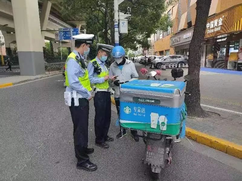 2023年6月11日19时25分,静安交警在共和新路江场路路口,对当事人朱某实施“从事快递、外卖等网约配送活动未按规定使用悬挂专用号牌的电动自行车的”违法行为,处以罚款50元。