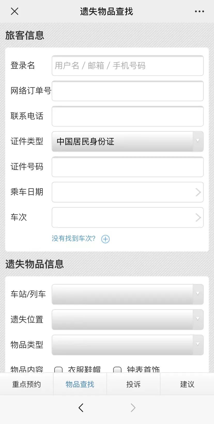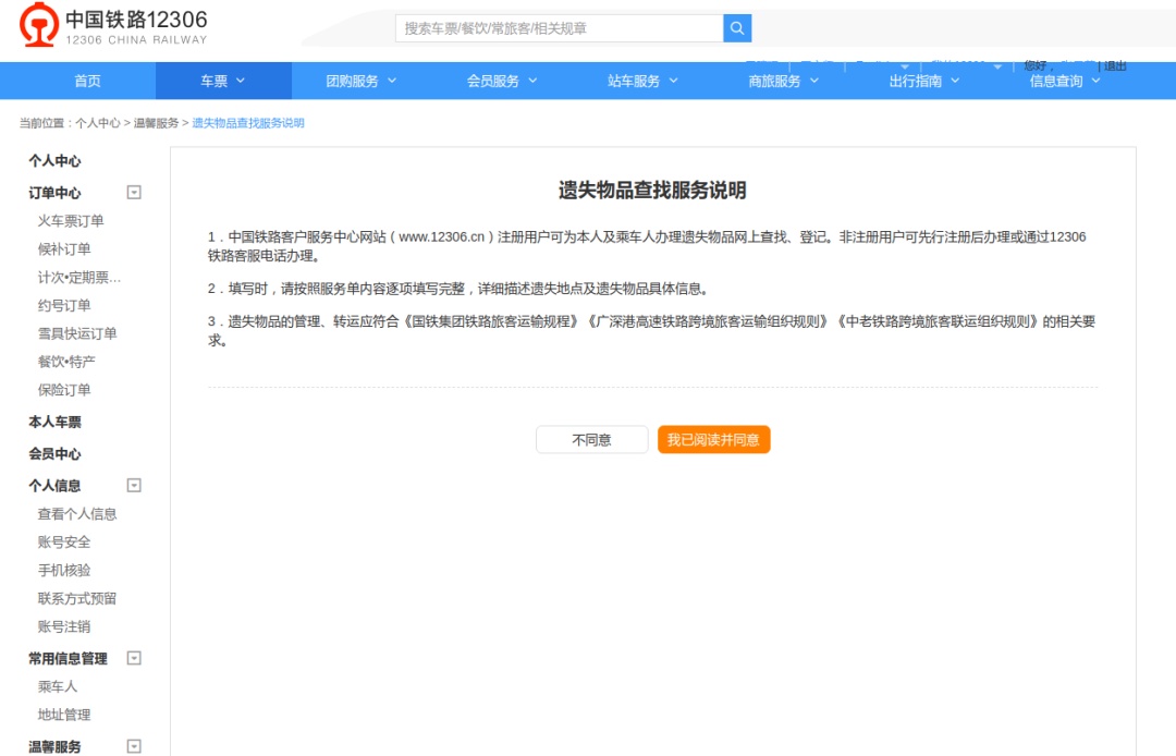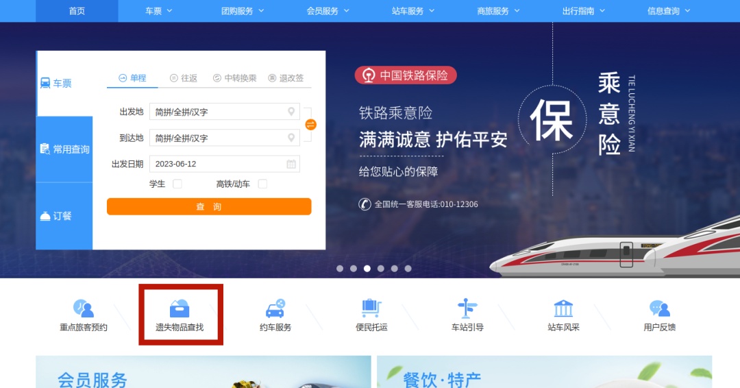 点击官网首页【遗失物品查找】,按要求填写相关信息提交。
