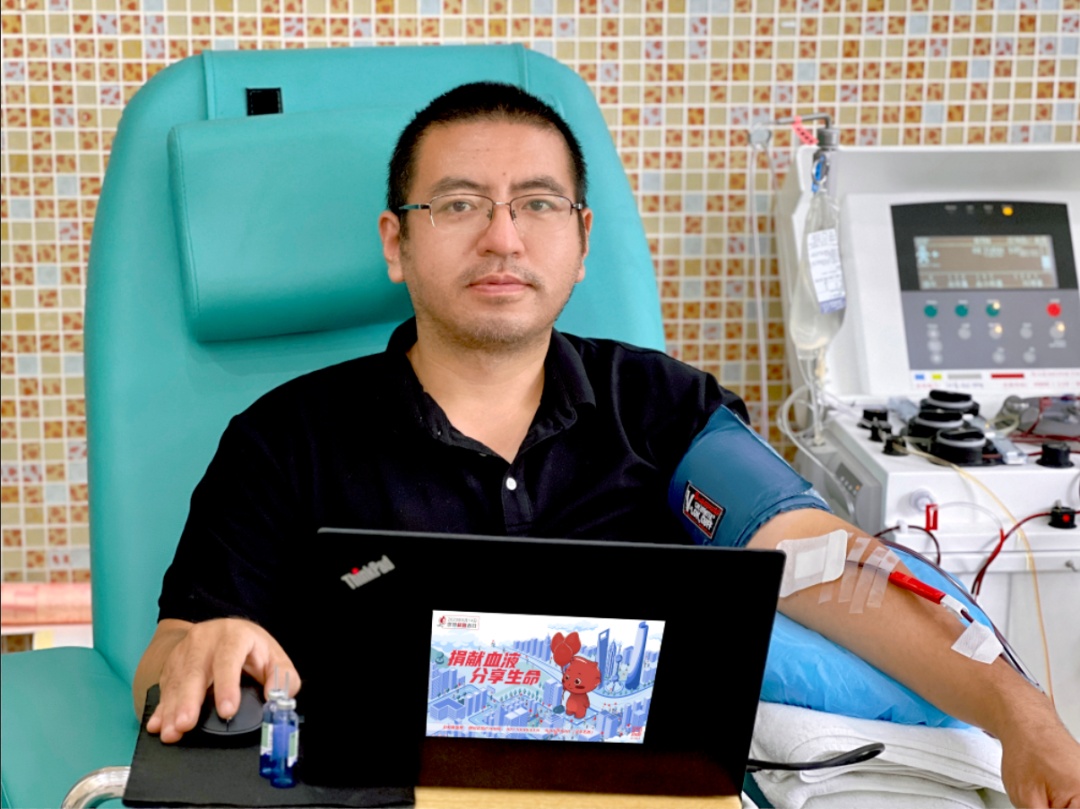 同样,上海外国语大学副教授汪段泳也是一名有着超过20年献血经历的长期献血者,仅在上海,他就捐献了全血1600ml、血小板50人份,曾荣获“2018—2019年度全国无偿献血奉献奖金奖”“2020—2021年度全国无偿献血奉献奖铜奖”等荣誉。