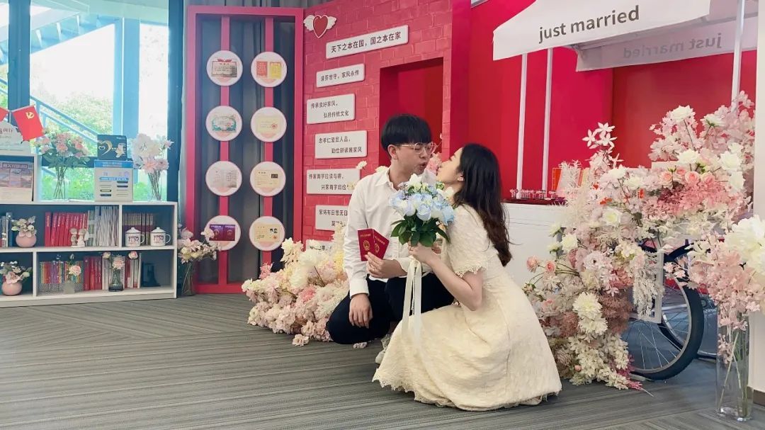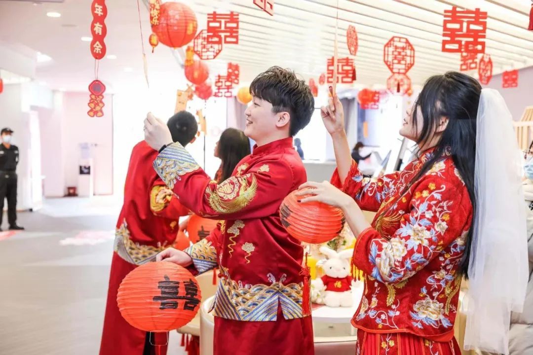 “区委区政府把最好的资源留给了新人,闵行区婚姻登记中心2020年10月迁址闵行文化公园,是上海唯一一家坐落于公园的婚登中心”,姚媚称,中心外部环境风景怡人,内部环境传统与时尚并存,在新人们的口口相传下,被冠以“上海最美婚登中心”的美誉。“全市通办”后,打破了区域限制,越来越多新人前来体验感受。