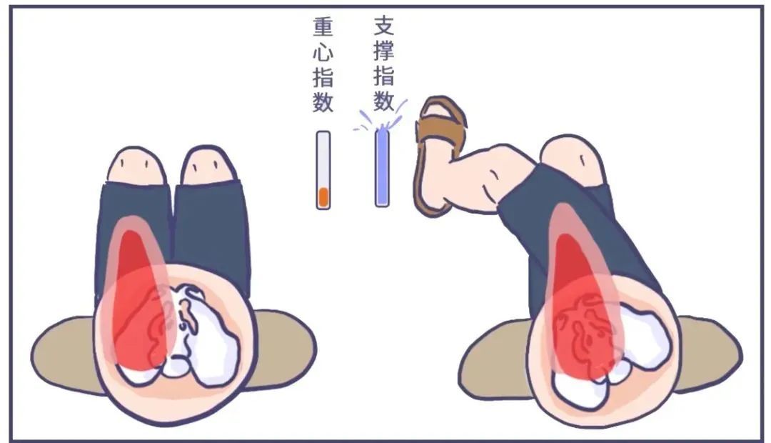 人的身体一直活在自己的重量下,支撑面越大。重心越低,就会觉得越轻松。