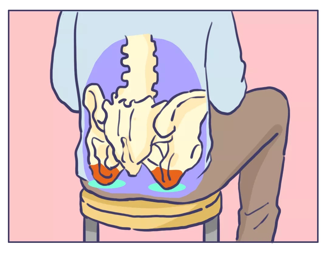 坐在椅子上的时候,靠坐骨支撑身体,人的支撑面其实很窄。