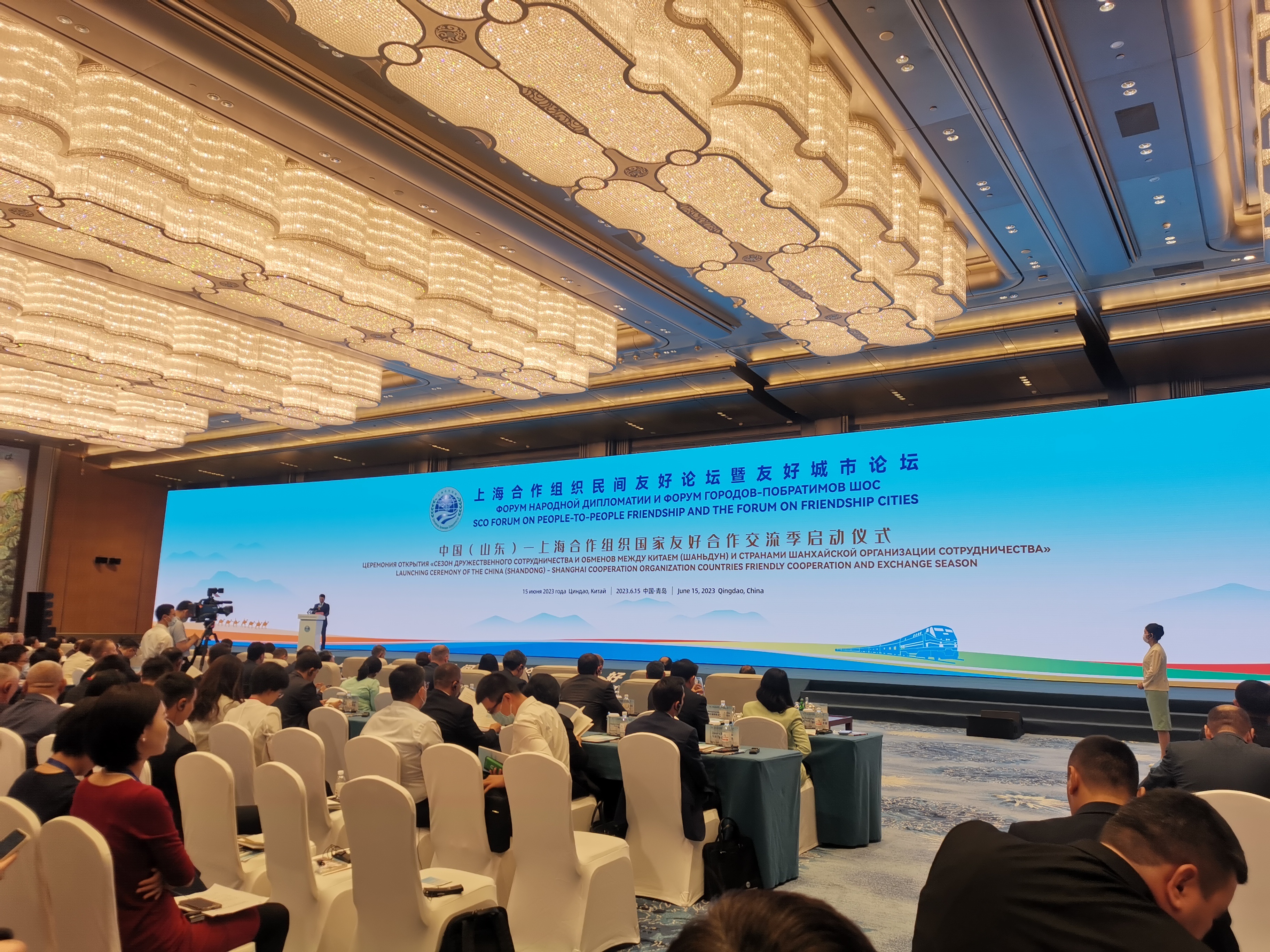 6月15日上午,上海合作组织民间友好论坛暨友好城市论坛开幕式在青岛国际会议中心举行。
