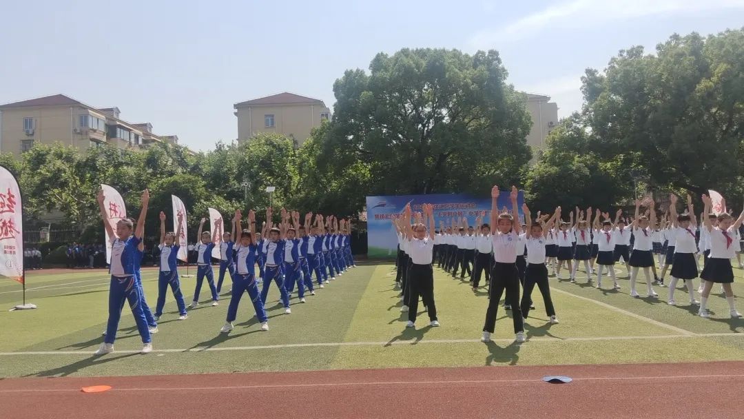 广播操是一项广为人知、练习者众多的体育运动,也是一种徒手操,即不用器械,有限的场地就可以开展,通常跟随广播进行锻炼,也可用口令指挥节奏。今年的“上实附小杯”小学生广播体操比赛,共有全区48所兄弟学校,1368名小运动员参赛。赛场上,所有的队员精神饱满,士气高昂,团结向上,以极大的热情投入到了广播体操的评比当中。随着广播操音乐的响起,他们紧跟节奏,时而挥臂,时而踢腿,时而跳跃,动作娴熟,规范整齐,张弛有度,整齐划一。从预备节到整理运动,一伸手,一抬腿,每一个动作都刚劲有力,把广播体操明快流畅的风格特点展露无遗。赛场上充盈着刚健之美,洋溢着少年的气息,飞扬着动人的神采。