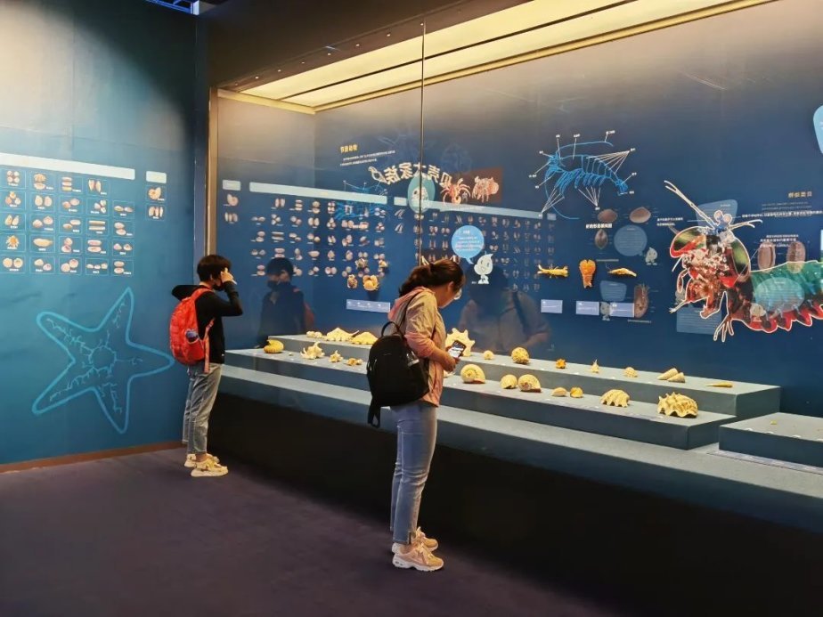 “探秘深蓝:中国海洋科考与深潜展”位于博物馆三层西侧临展厅,展览从科技、装备、自然等角度,展示了当代中国海洋科考与深潜事业所取得的辉煌成就。观众可以沉浸式体验滨海湿地、巨藻森林、深海水母、珊瑚礁、缤纷极地、星空大海等生态场景,实地感受水下考古挖掘,并与企鹅家族拍照合影等。