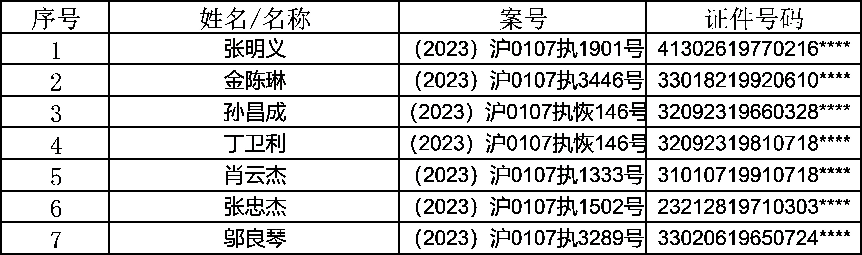 失信个人名单