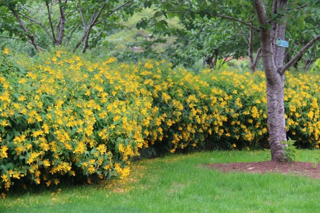 色丝乱吐江毫出,金缕低萦舞带斜。成片的金色花篱正绽放在彭浦四季公园,不要错过这份夏日盛景。