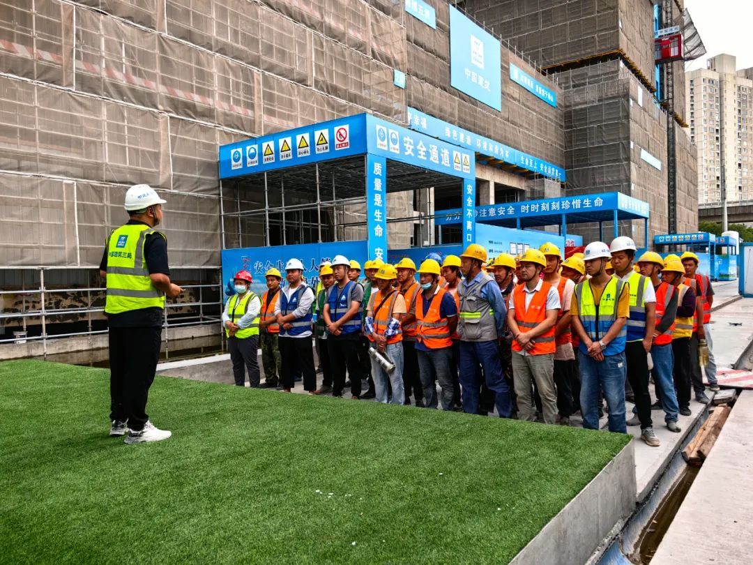 今年6月是全国第22个安全生产月。昨天(6月14日),在位于天祝路云谷路交叉口的建筑工地,中建三局项目方开展安全生产主题培训,增强工人们的安全意识,提高安全操作水平和自我防护能力。